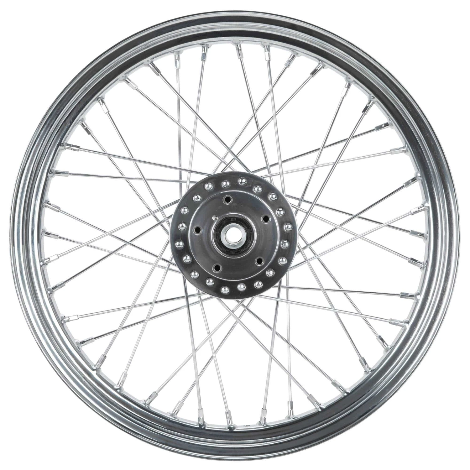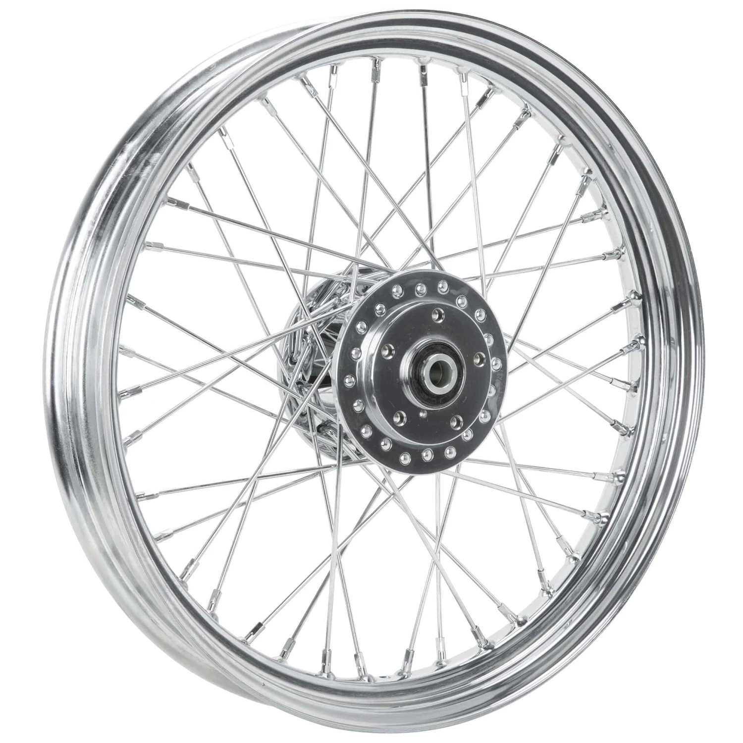 This 19 x 2.5 inch front wheel is laced, trued and ready to run! Can be used on all Harley-Davidson Sportsters and FX models 1984-1999. This is a dual flange wheel. These high-quality wheels feature a Harley-Davidson style drop-center steel rim, chrome spokes and tapered wheel bearings. The tapered, 3/4 inch ID (inside diameter) bearings are the same style as stock H-D for easy future maintenance.