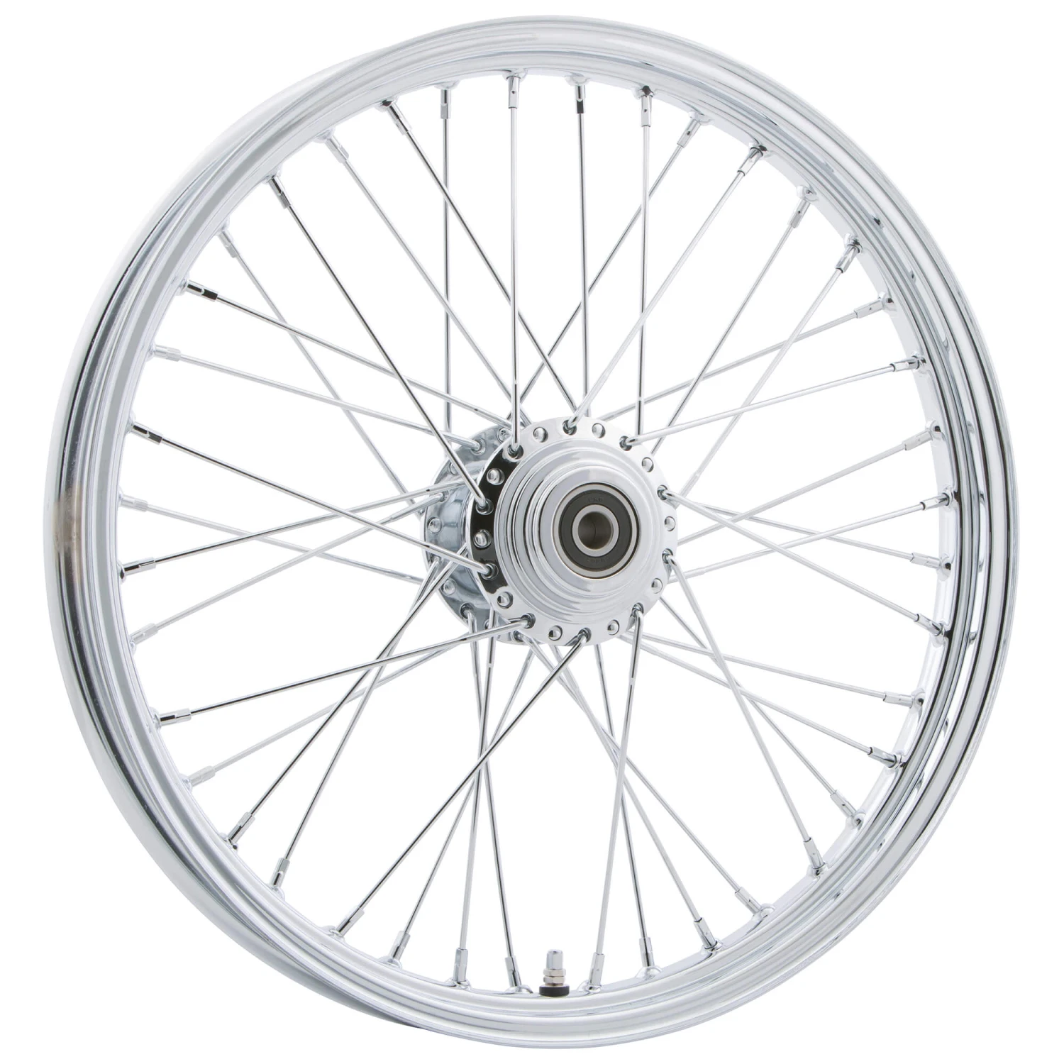 HardDrive Gloss Black and Chrome Spoked wheels are laced in a standard 40-Spoke pattern. Wheels come complete with spoke sealant, Chrome valve stem, inner sleeve and sealed wheel bearings (except the `84-99 fitment which comes with ¾” Timken bearings with an outer seal installed – greasing is required)