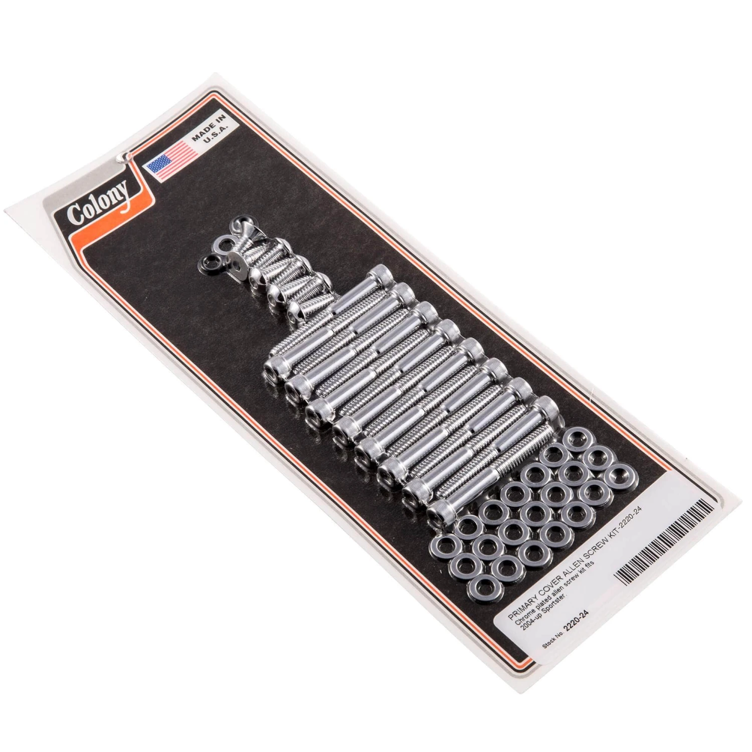 PRIMARY COVER ALLEN SCREW KIT Chrome plated allen screw kit fits 2004-up Sportster.