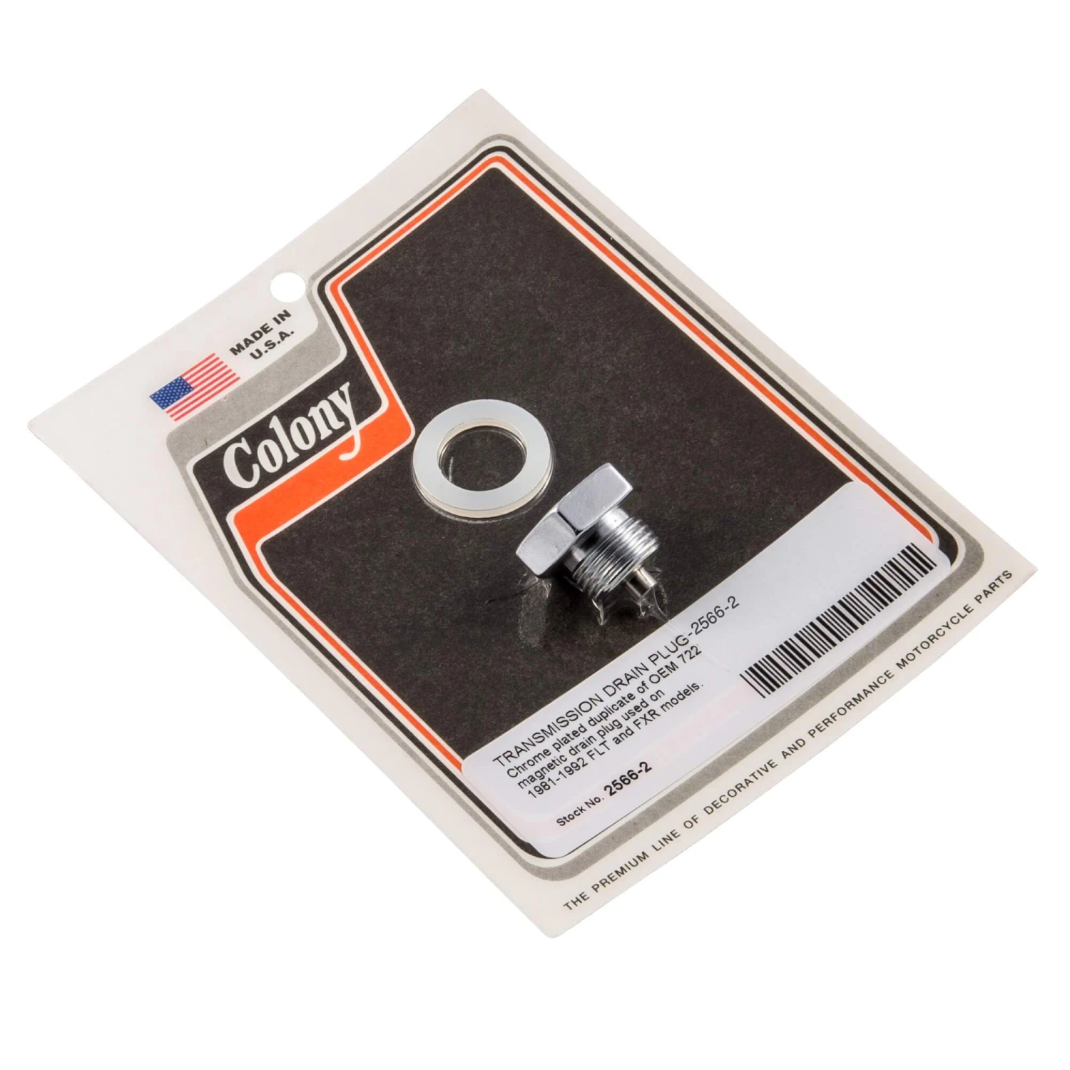 TRANSMISSION DRAIN PLUG Chrome plated duplicate of OEM 722 magnetic drain plug used on 1981-1992 FLT and FXR models.