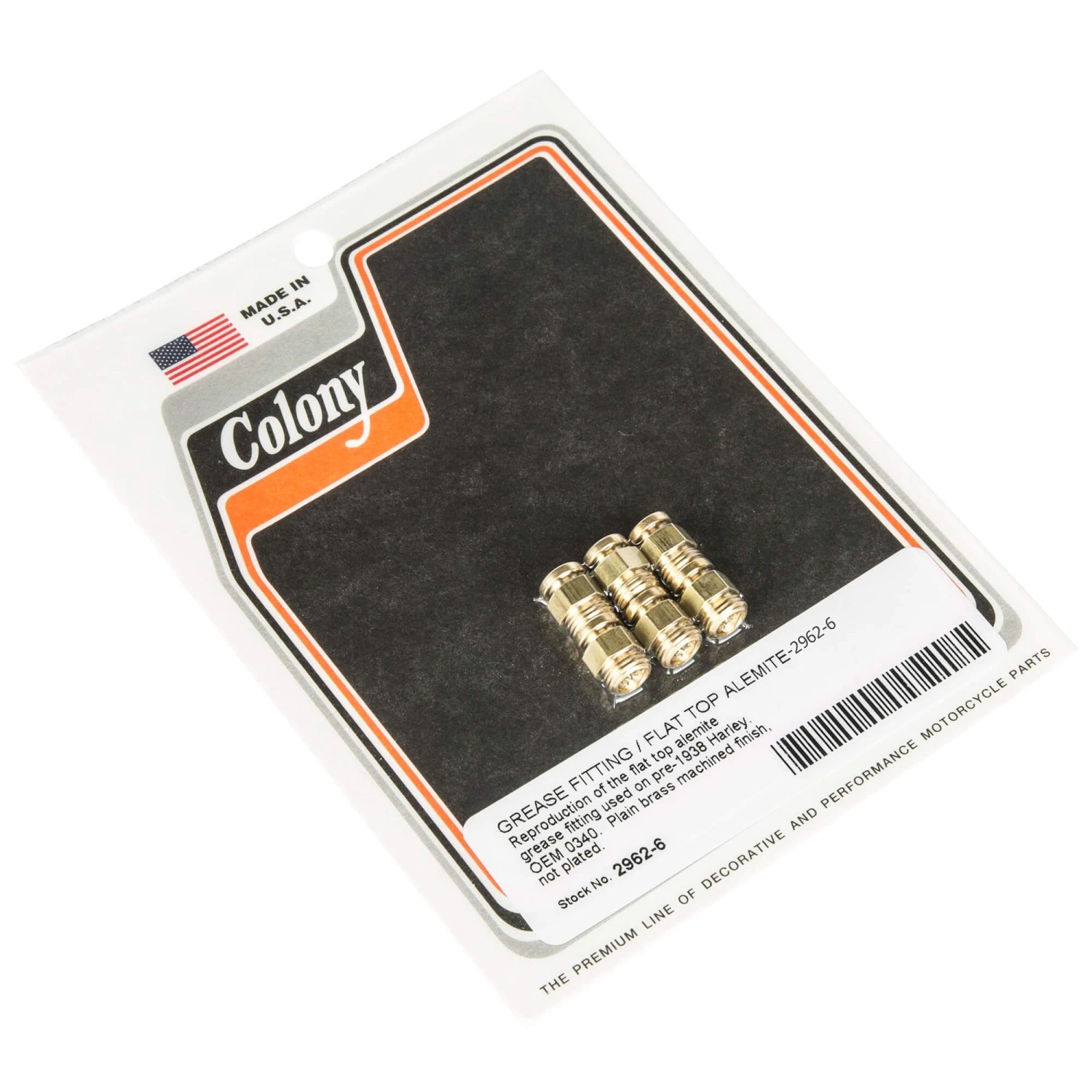 Grease Fitting Flat Top Alemite Brass Harley-Davidson pre-1938 OEM 0340 GREASE FITTING / FLAT TOP ALEMITE Reproduction of the flat top alemite grease fitting used on pre-1938 Harley. OEM 0340. not plated.