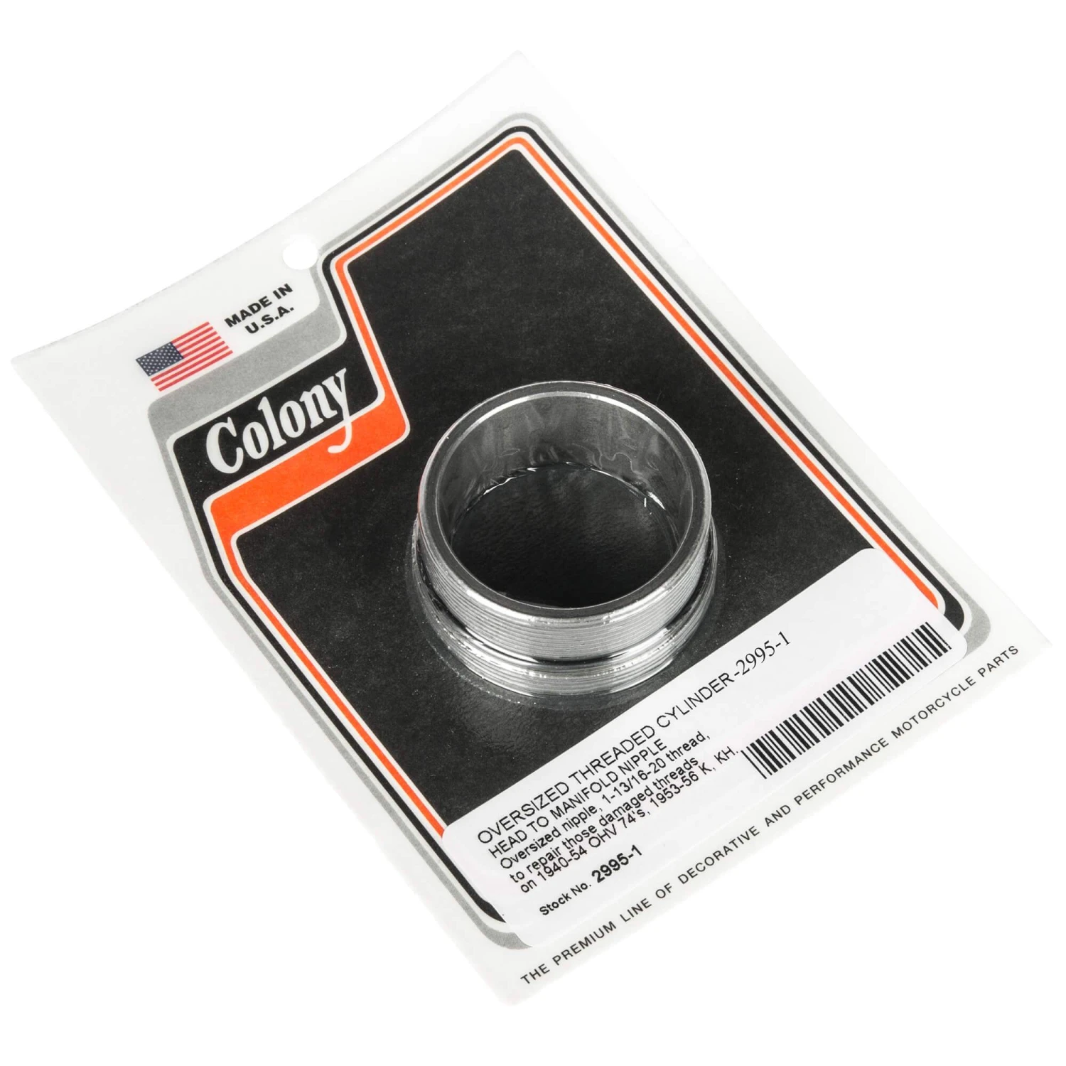 Oversized Cylinder Head to Manifold Nipple Harley 40-54 74s 53-56 K KH OVERSIZED THREADED CYLINDER HEAD TO MANIFOLD NIPPLE Oversized nipple, 1-13/16-20 thread, to repair those damaged threads on 1940-54 OHV 74’s, 1953-56 K, KH.