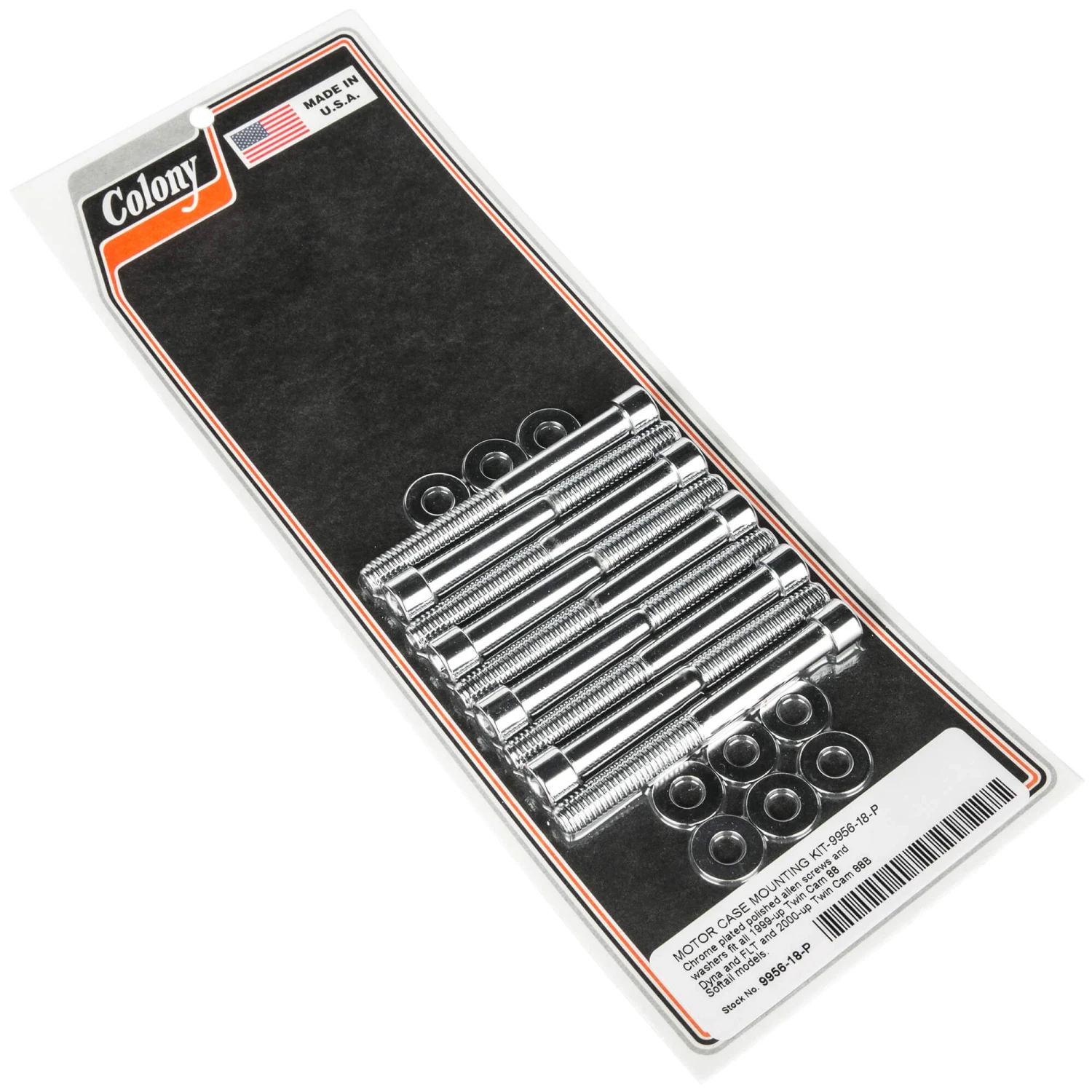 Motor Case Mounting Kit Smooth Chrome Allens Harley Twin Cam Dyna FLT Softail MOTOR CASE MOUNTING KIT Chrome plated polished allen screws and washers fit all 1999-up Twin Cam 88 Dyna and FLT and 2000-up Twin Cam 88B Softail models.