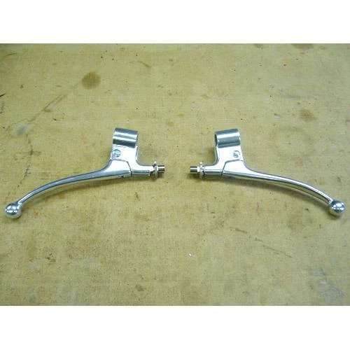 are modeled after the old Amal type. They each have a cable adjuster, and will accept cables common with Triumph, BSA, Norton and other motorcycles with 7/8″ bars such as Yamaha xs650 and Honda cb750, etc. These are very nice and simple and feature a two screw clamp that is hidden underneath the bar for a clean look. I have run a set of these on my BSA since I built it and they work and look great.