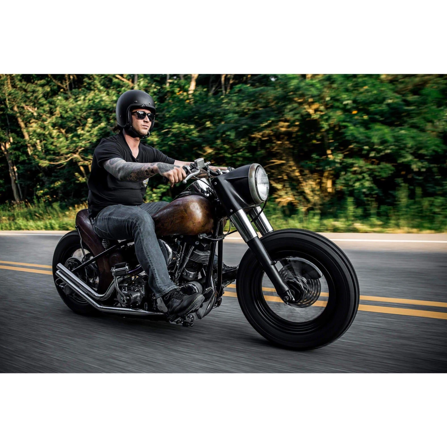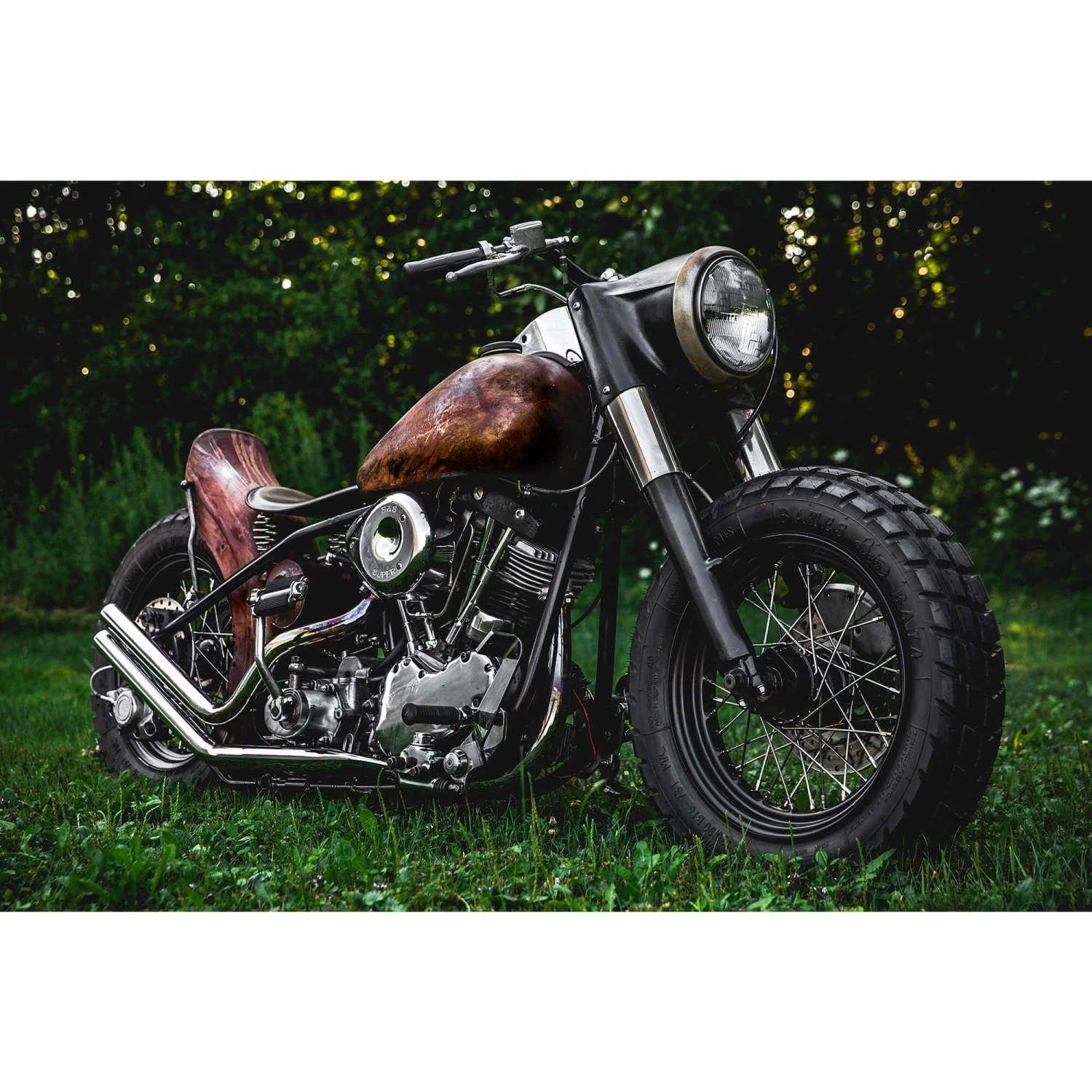 Gravel, rocks and roadkill – here’s a tire that knows no fear. Whistle into town, come back across the fields Steve McQueen style. Do some racing among friends on the neighborhood dirt track. Or what about that camping trip to the other end of the world you’ve been postponing all those years? The new Bates Baja can handle it all.