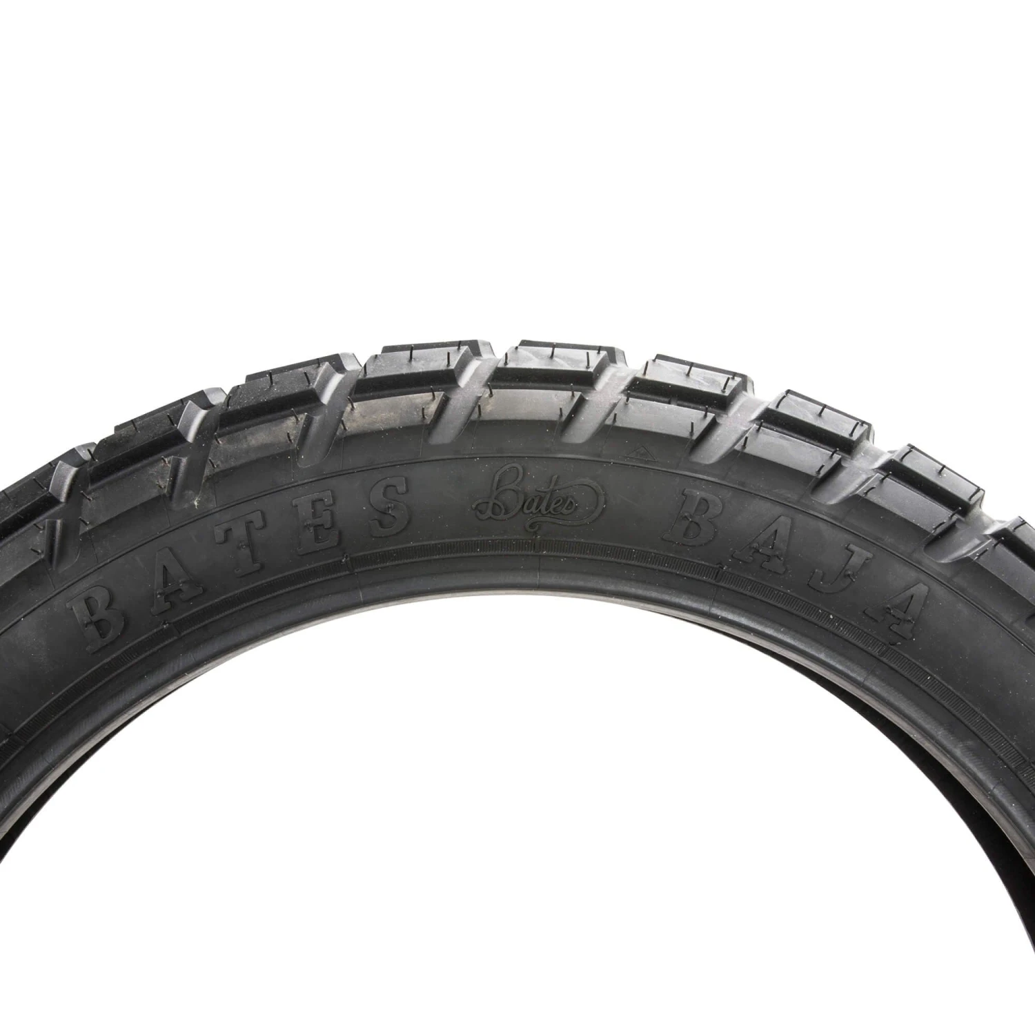 The Bates 90 Baja tire is the product of W&W Cycles with their long experience on diverse gravel, dirt and mud pistas, highways and Autobahns on several continents. They also use it on their daily riders. A low profile on/offroad tire manufactured to the highest technical standards.