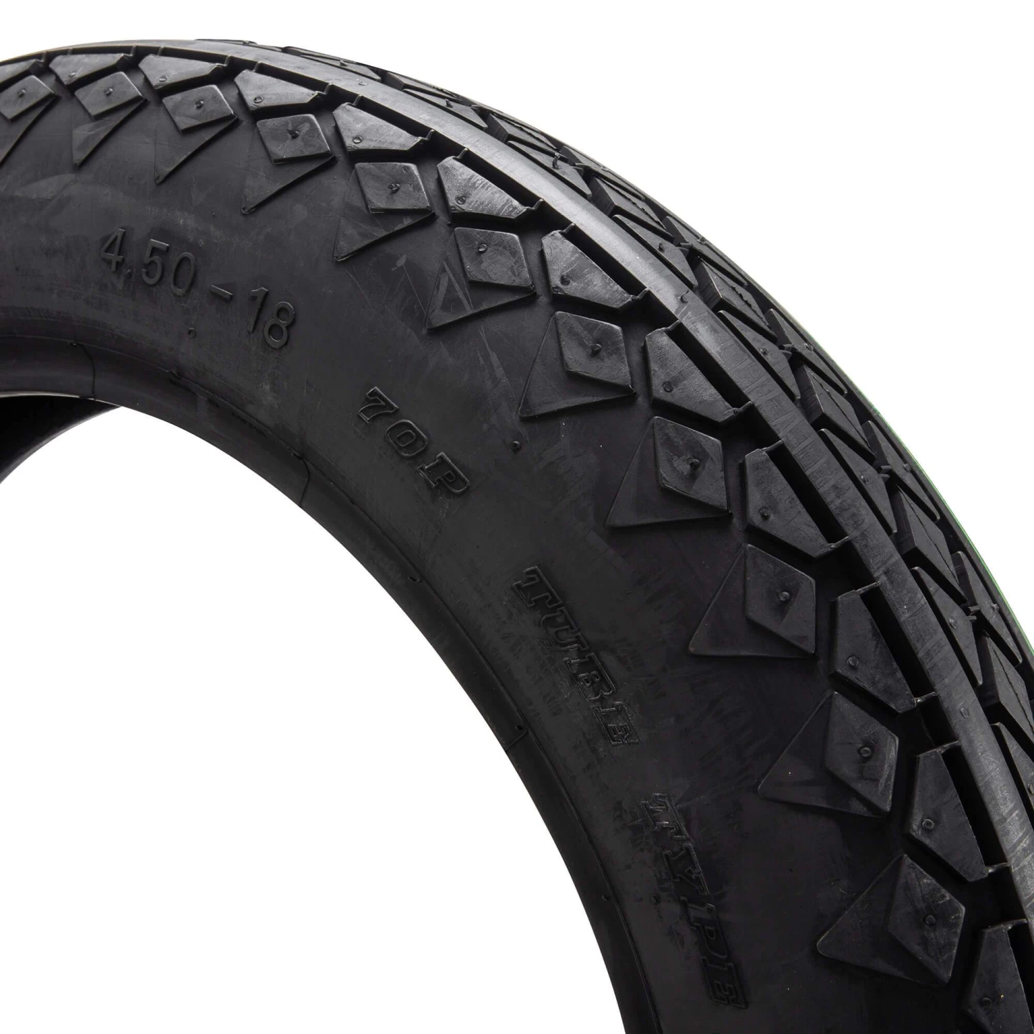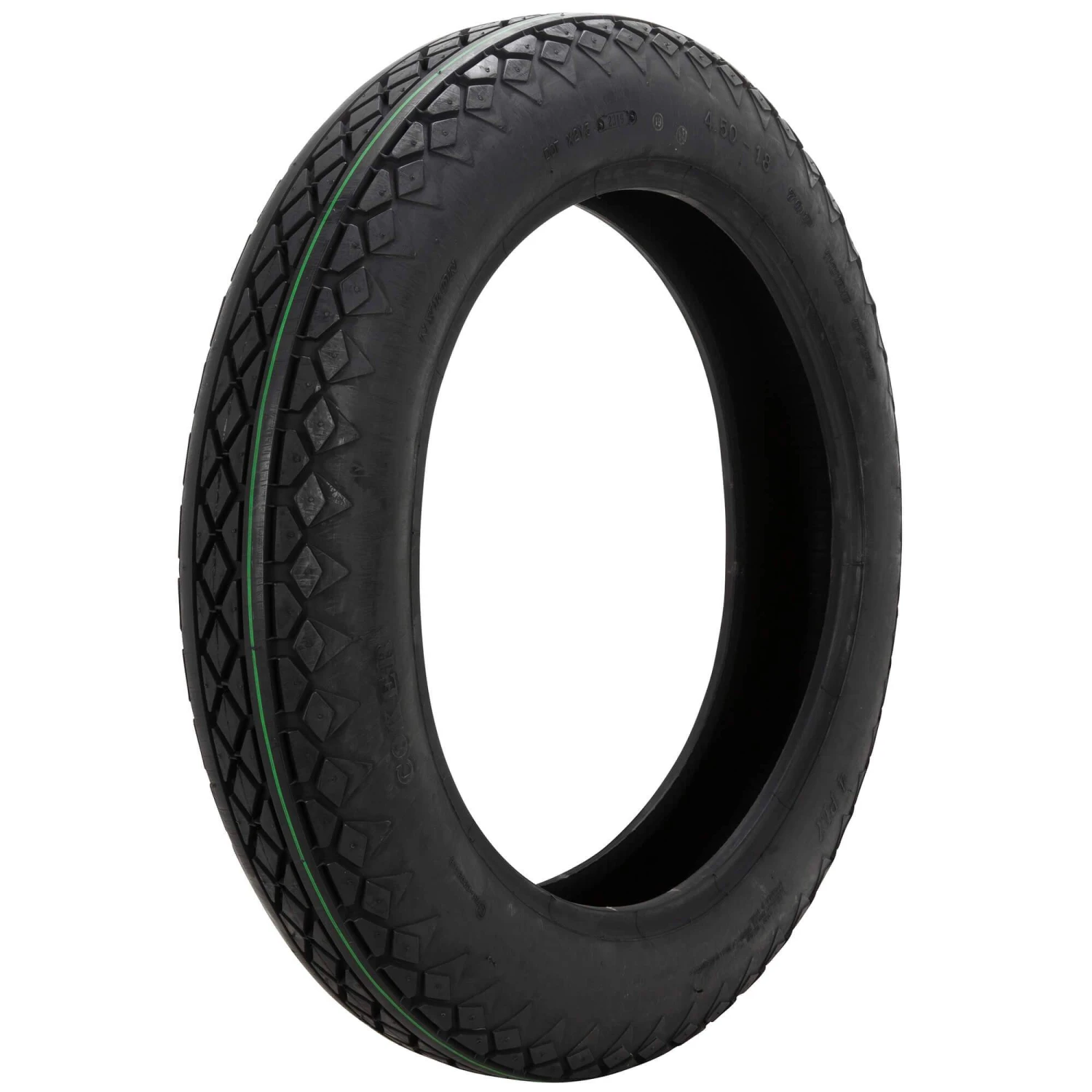 This Coker Diamond 450-18 motorcycle tire fits thousands of vintage motorcycles, from classic Harley Davidsons, to customized bobbers, choppers and more. This tire features the classic Diamond tread pattern, which is authentic for 1930s through 1950s American motorcycles, and is the perfect finishing touch for a custom bike. Please note that dimensions listed tread width, section width and overall diameter are non-scientific and based on an inflated tire, mounted on a wheel. Dimensions may vary due to rim width and inflation pressure.