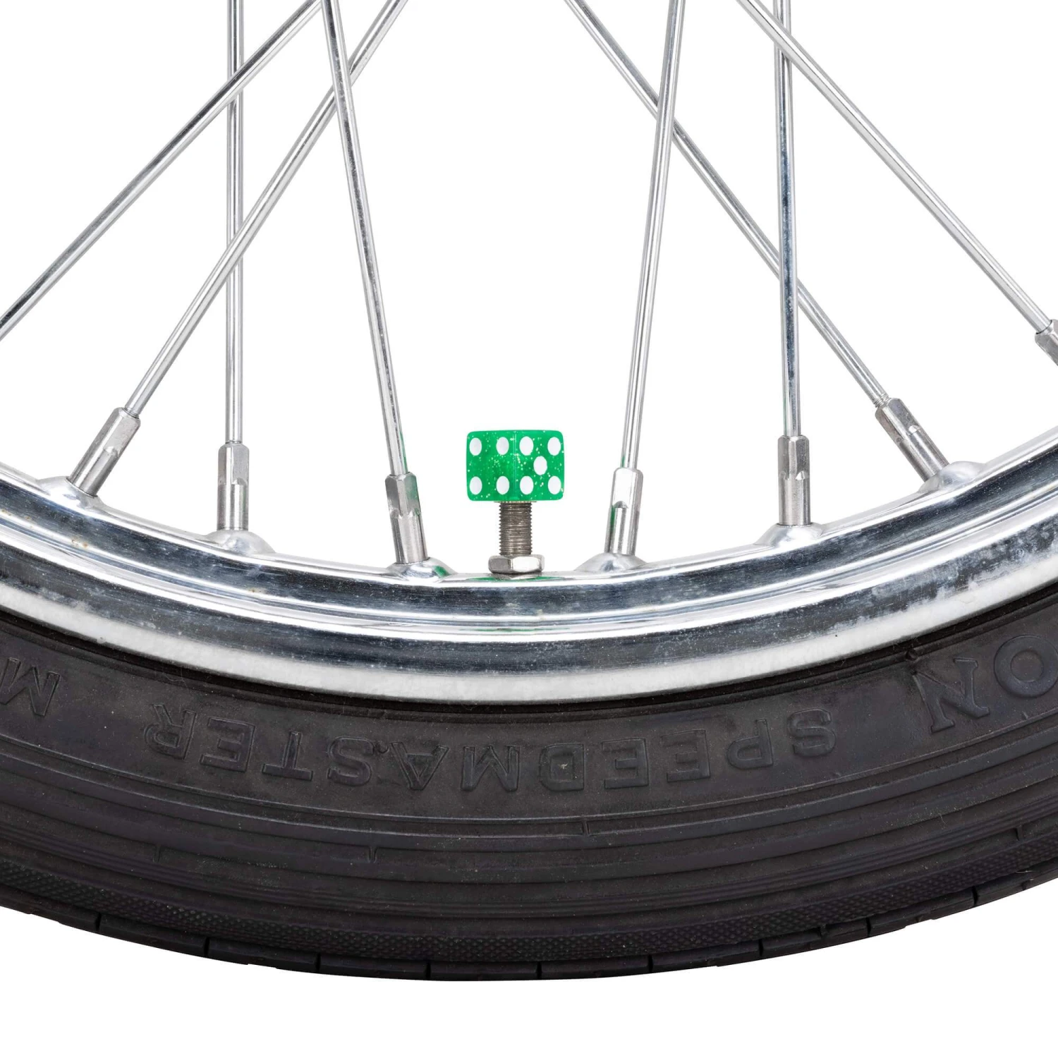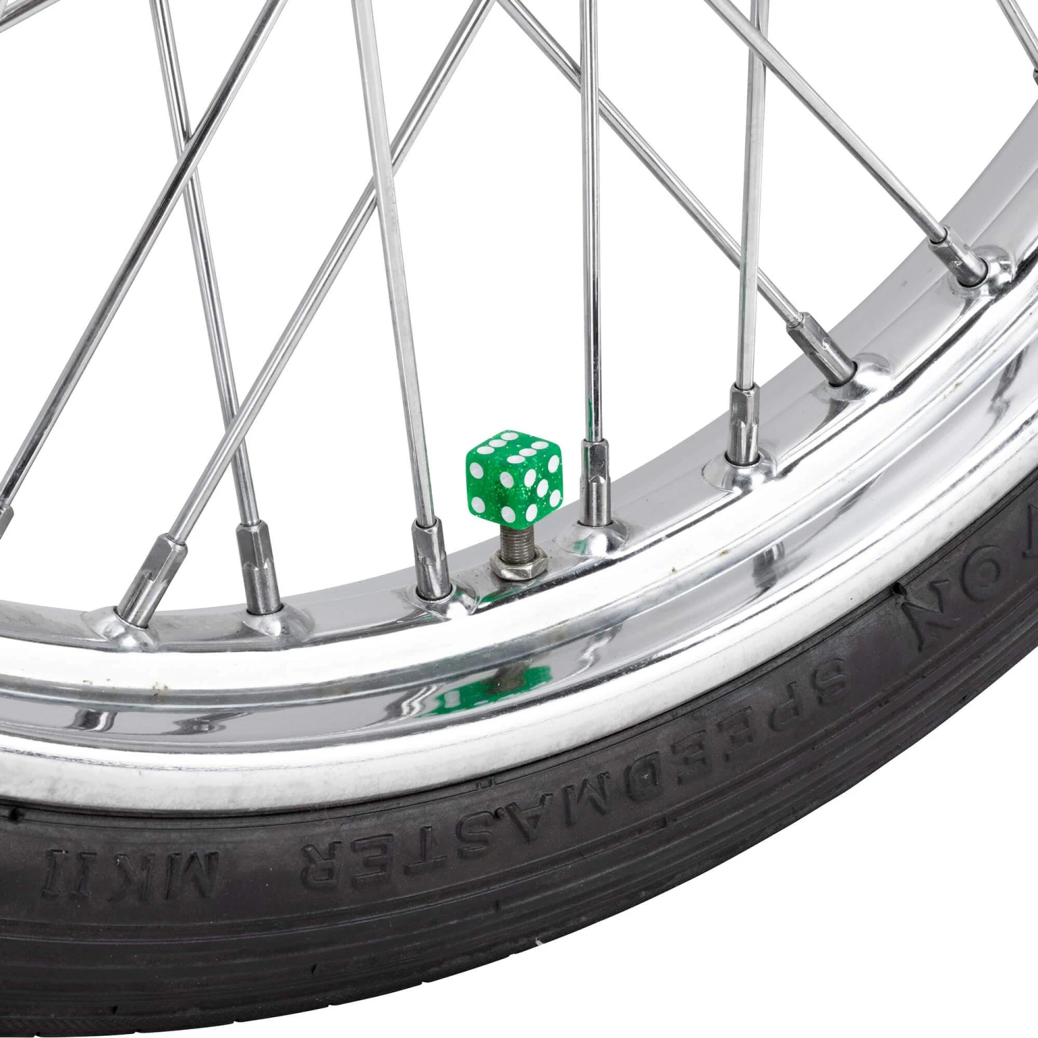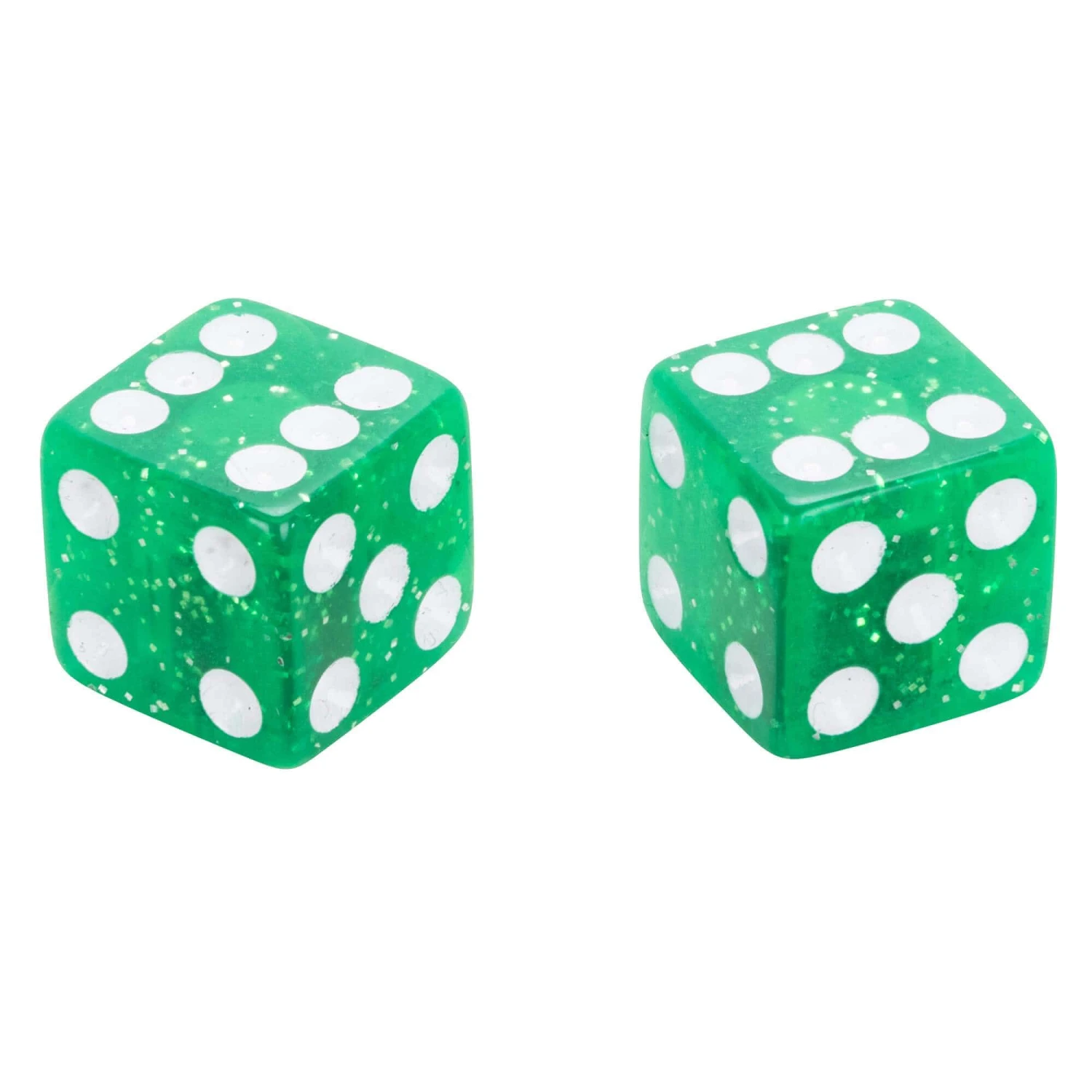 These glitter Dice air valve stem caps are available in 4 different translucent colors.. Add a little nostalgia to your ride, or maybe play a game while you are broke down on the side of the road, and take your buddies cash. Made to fit most standard valve stems. Sold in Pairs.