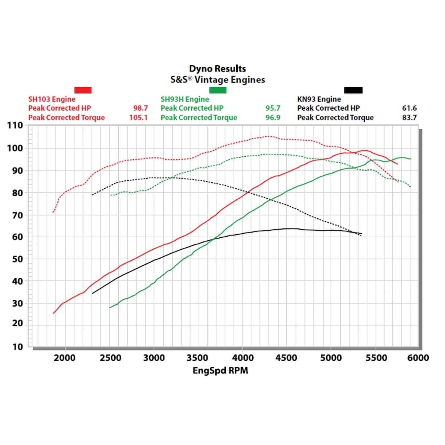 - 93″ displacement, 8.2:1 compression, 4-1/2″ stroke, 3-5/8″ bore