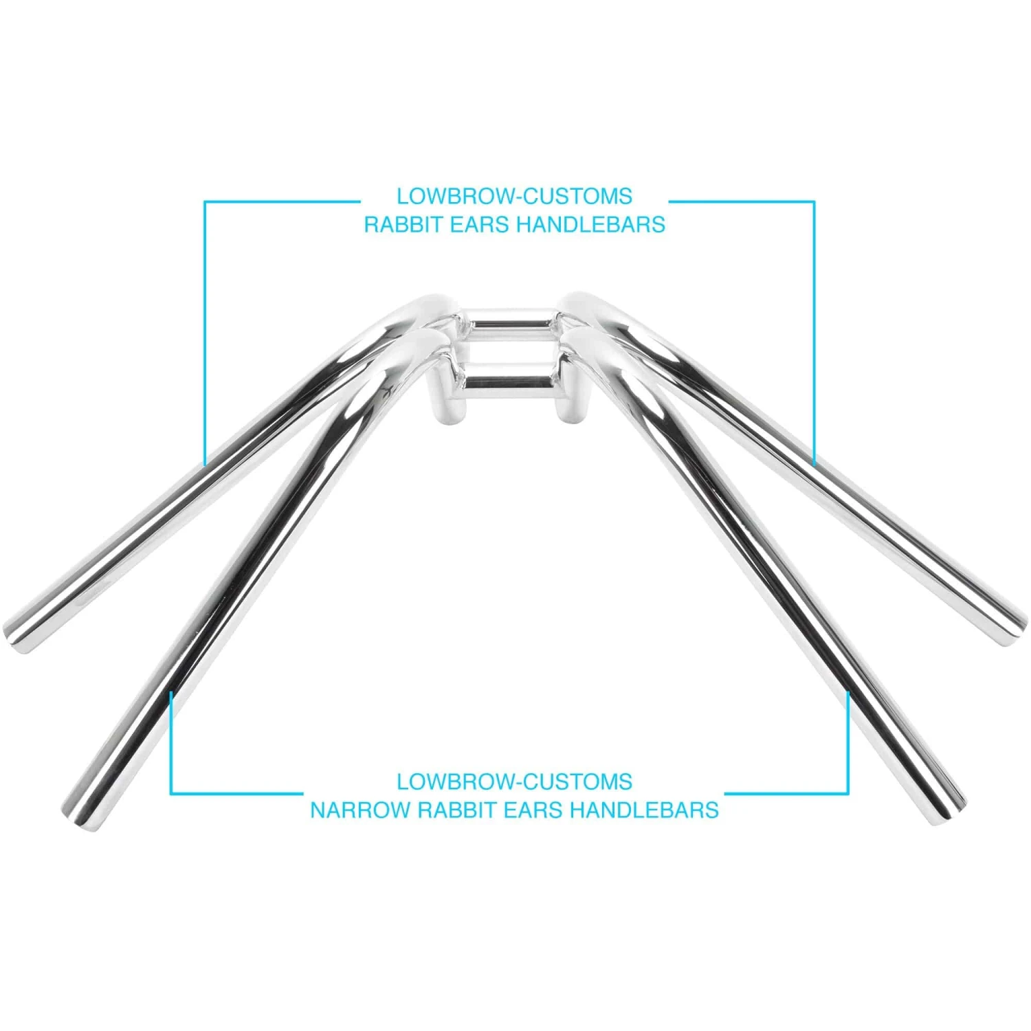 Narrow Rabbit Ear Handlebars are extra choppery, with the bars in 30 degrees tighter versus our standard Rabbit Ears. At home on swingarm or rigid Sportsters (especially with a