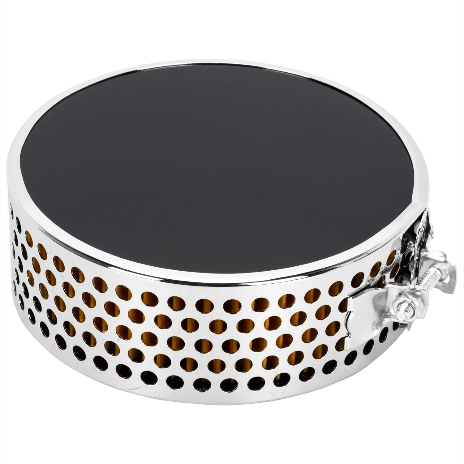 This Thread-On Pancake Aircleaner fits Triumph TR6 models and includes everything pictured. This has the offset mount so the air filter does not center directly over your carb mouth. Sold individually.