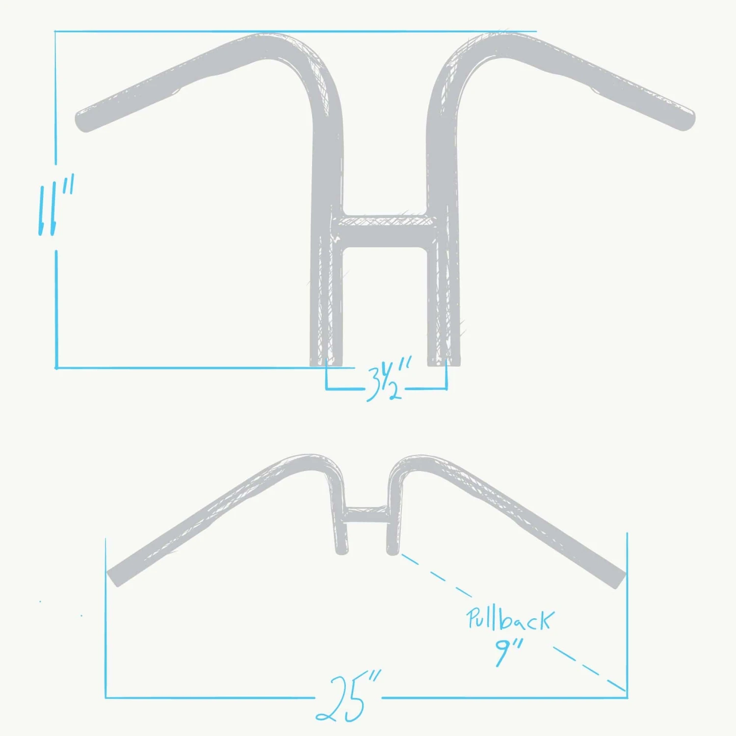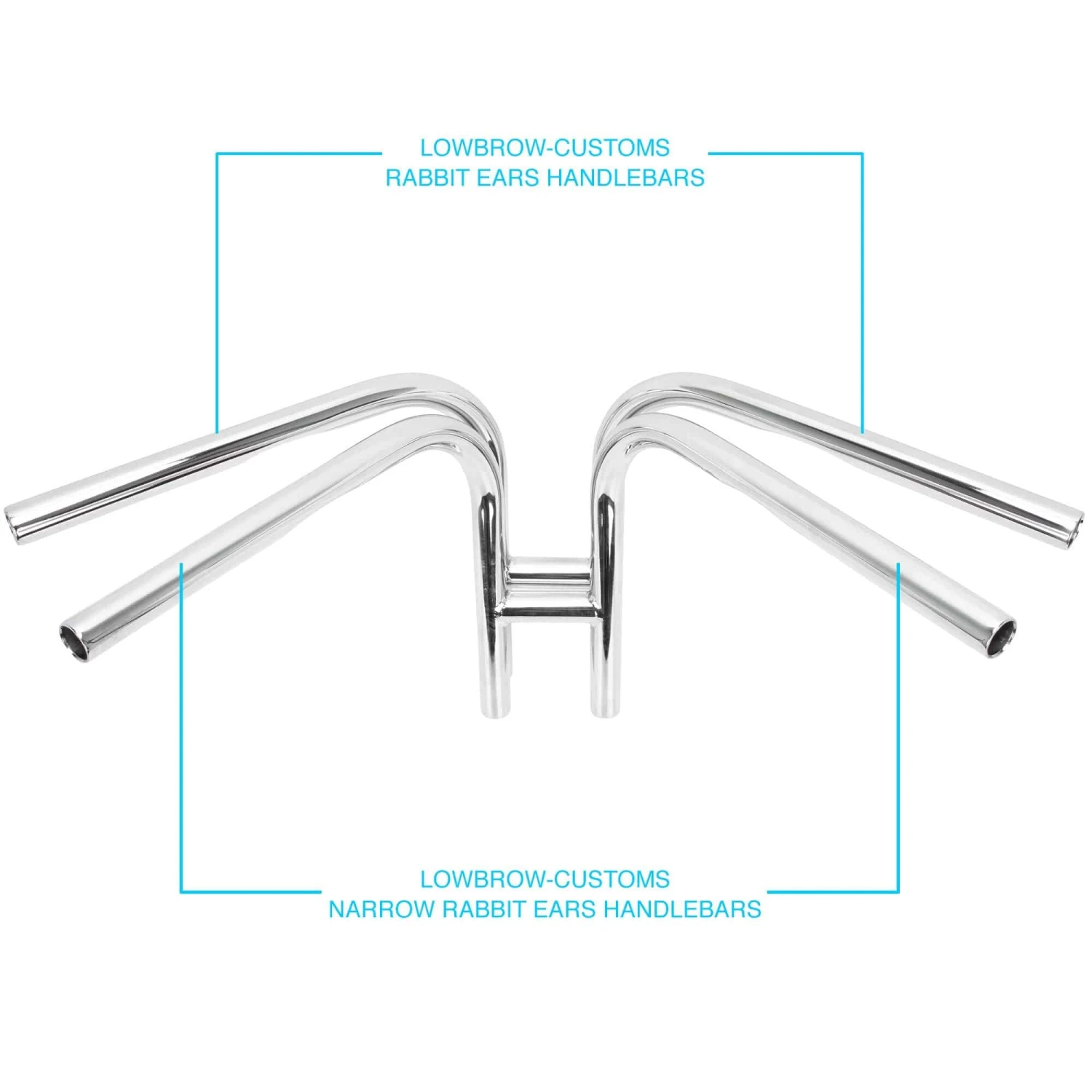 Rabbit Ear Handlebars are perfect for everything from mild custom bikes to ground-up, custom-built choppers. They offer a relaxed riding position and are bolt-on, direct fit for Harley-Davidson Sportster and Big Twin motorcycles. They also fit other makes of motorcycles with risers on 3-1/2 inch centers. They are threaded for common 1/2-13 thread pitch bolts (not included). They look and handle great at full-width or