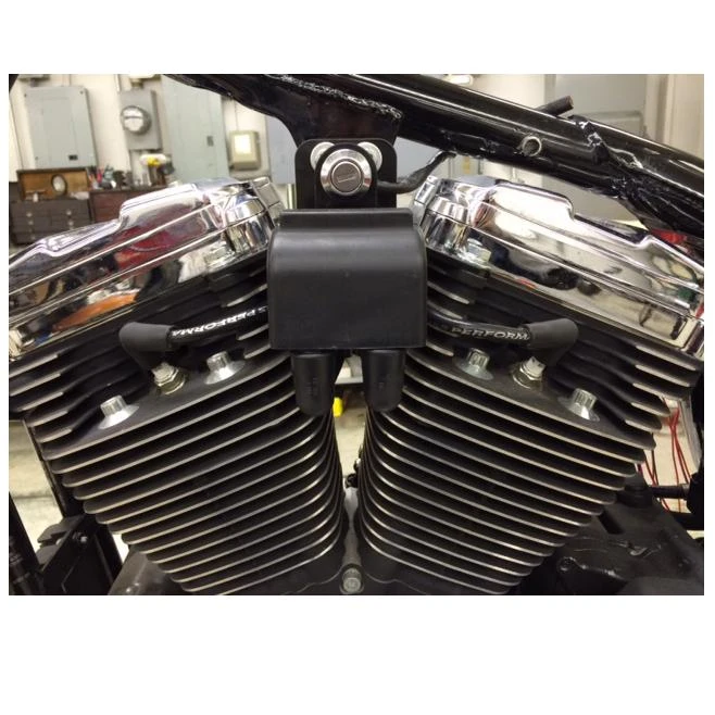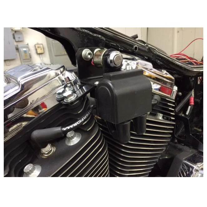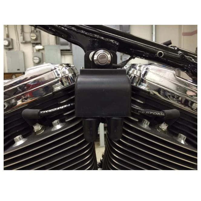 These heavy-duty custom top motor mounts fit Harley-Davidson 1986 – 2003 Sportster models. This top motor mount includes a coil mounting location, putting it in just the right spot for easy spark plug wire routing. It also features a new location for the stock ignition key switch, keeping everything nice and tidy. This mount is ideal for choppers and custom Sportsters. Black powdercoated steel. Made in Ohio, USA.