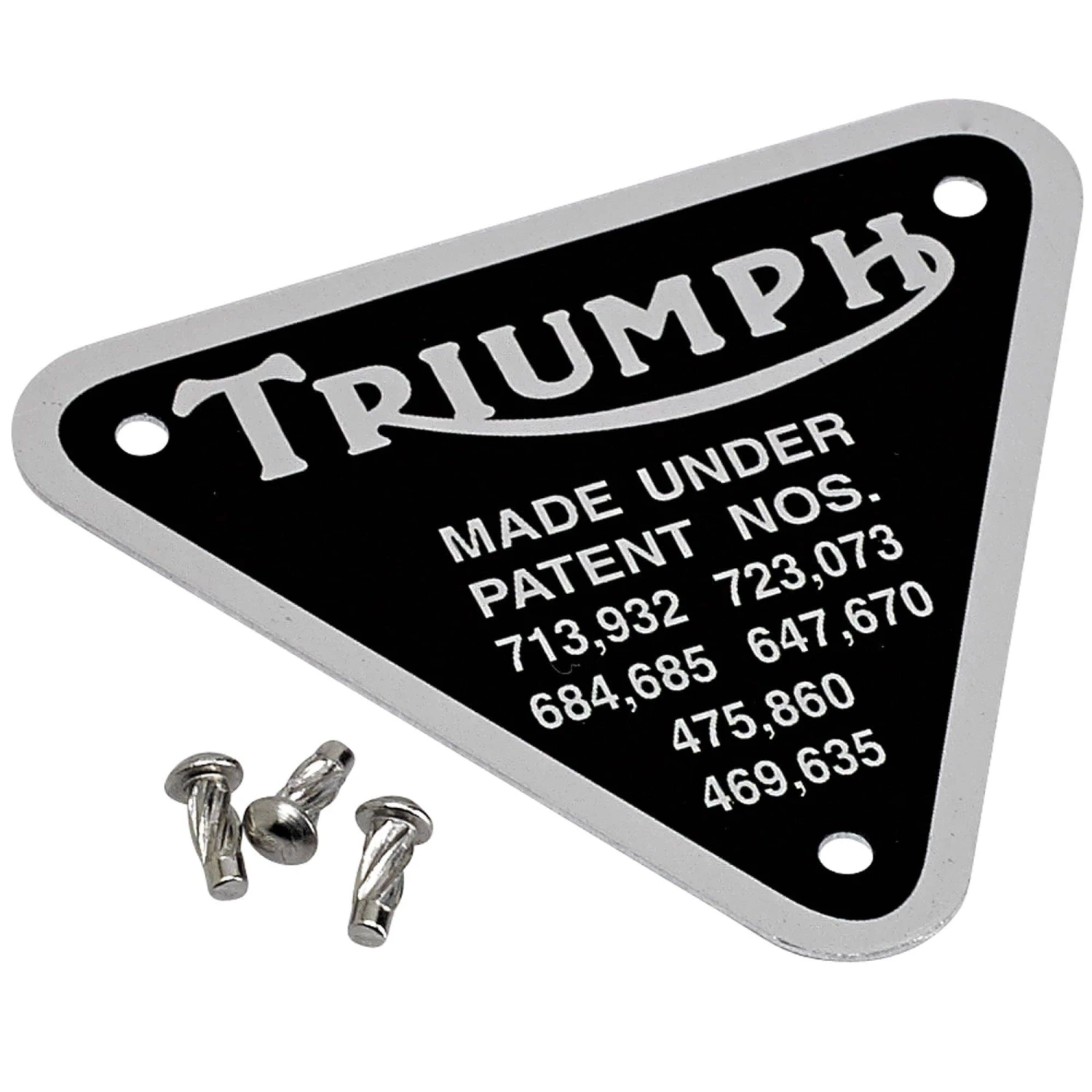 This replacement Triumph patent plate includes the required stainless steel rivets to replace your worn or missing timing cover patent plate. Replaces OEM# 70-4016 and 60-4255.