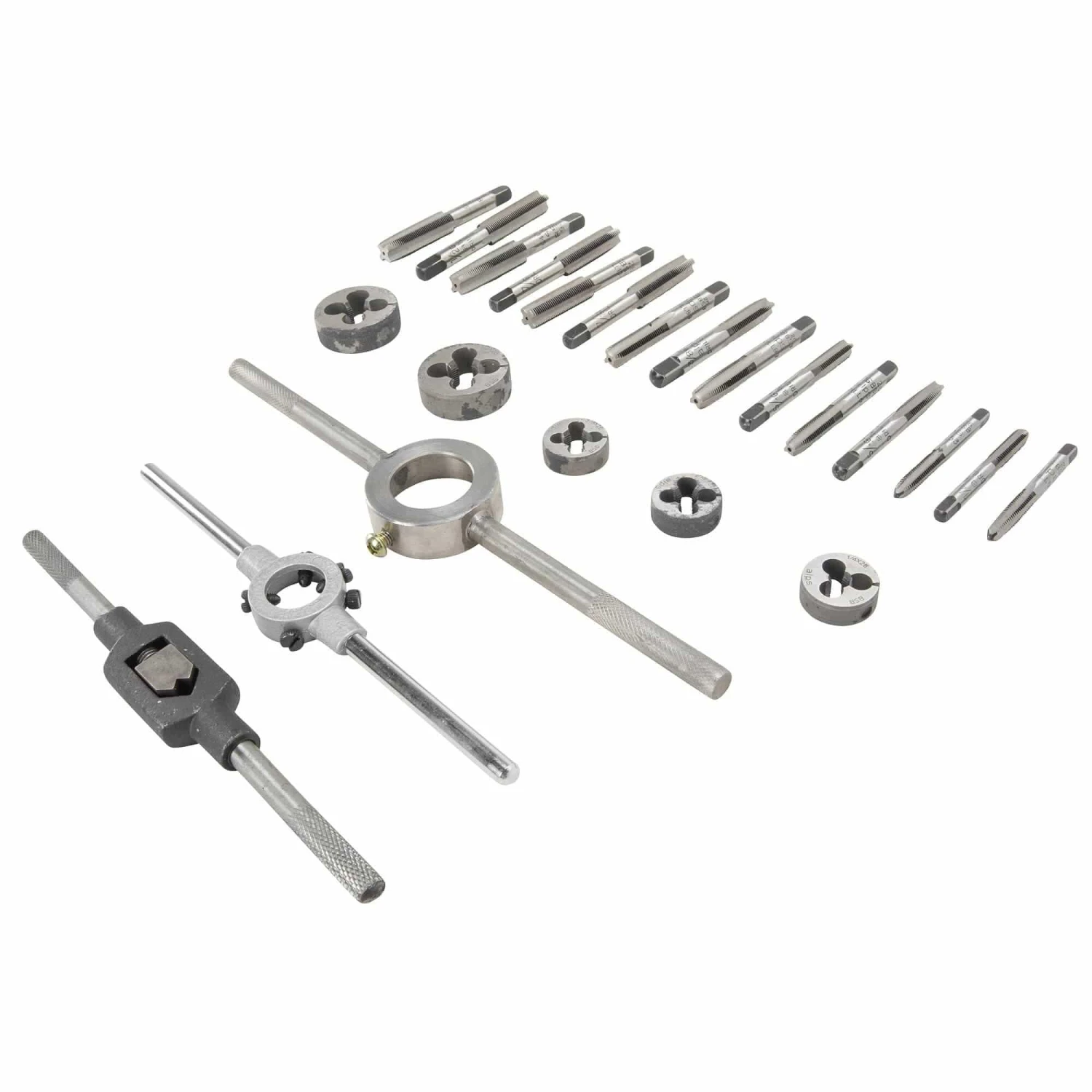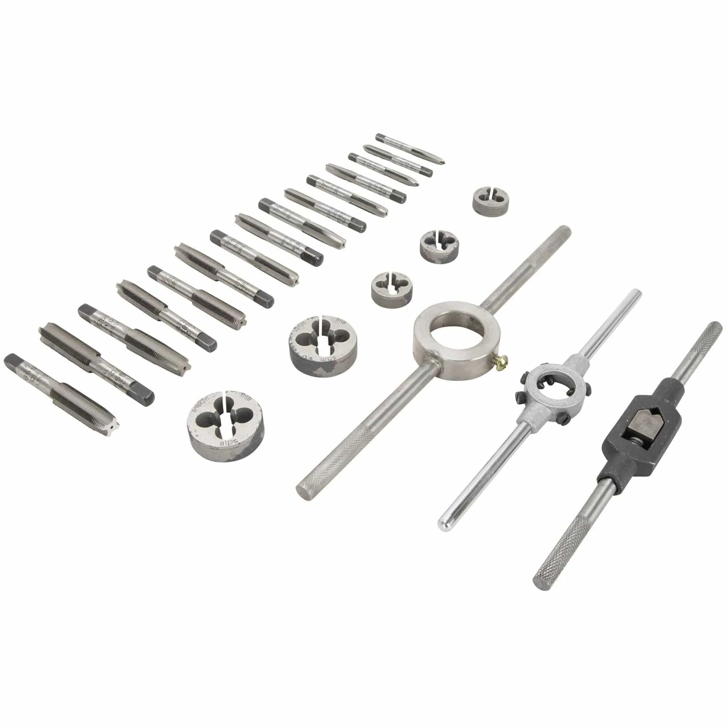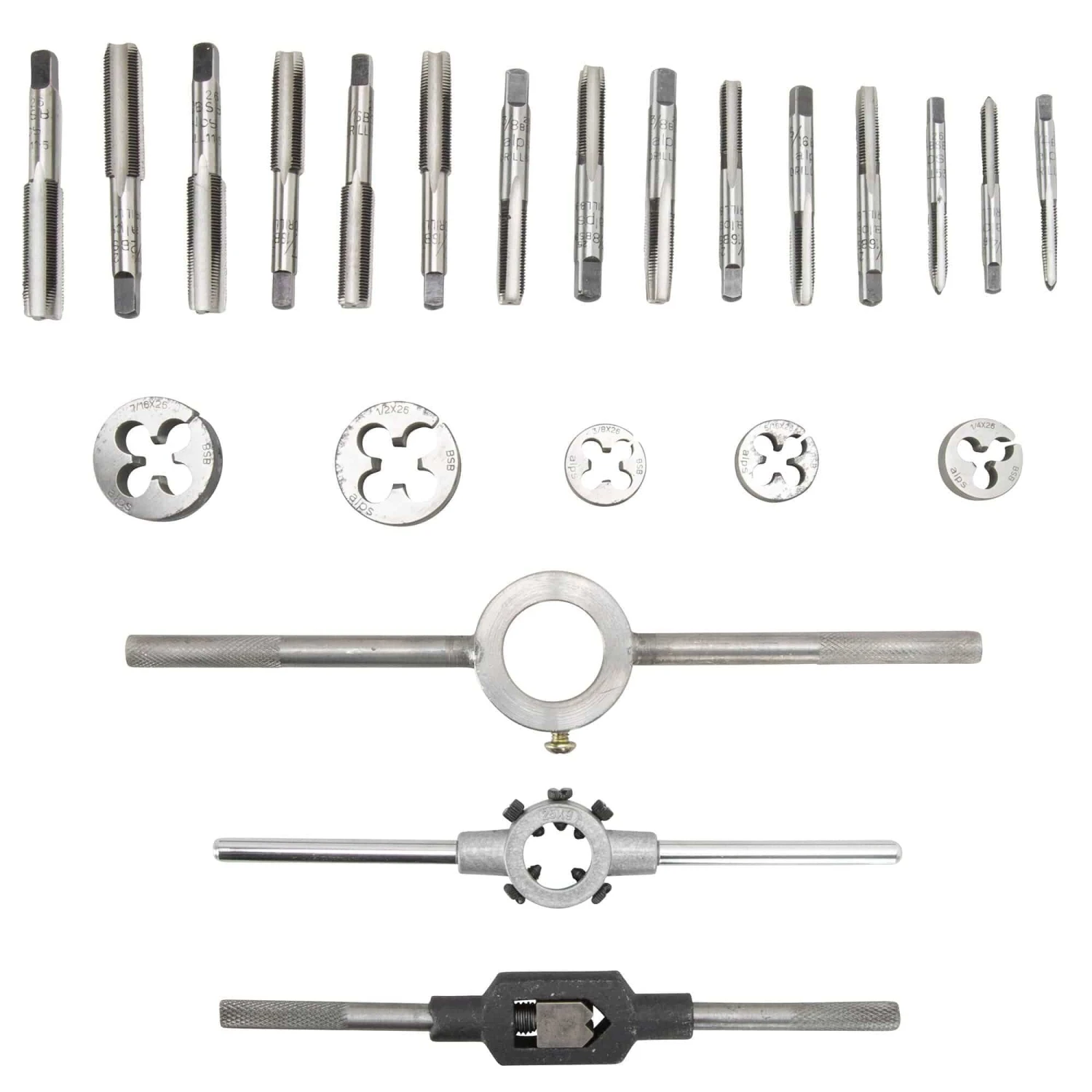 This Whitworth CEI / BSC tap and die set is the answer to one of your problems, the cure to the headache that is your hobby. It has a starting and bottoming tap for each size, 1/4″-26, 5/16″-26, 3/8″-26, and 1/2″ taps. It also includes a round die, one each for the same sizes. Also included are a tap handle and a die handle and it all comes in a nice case to keep it organized and handy.