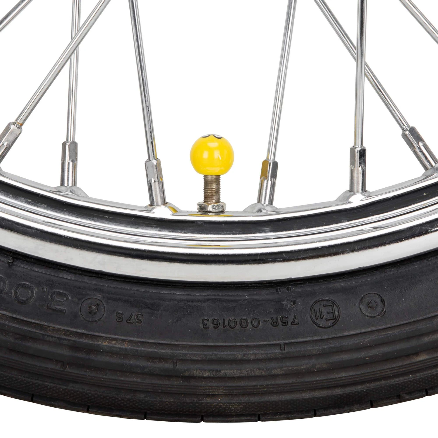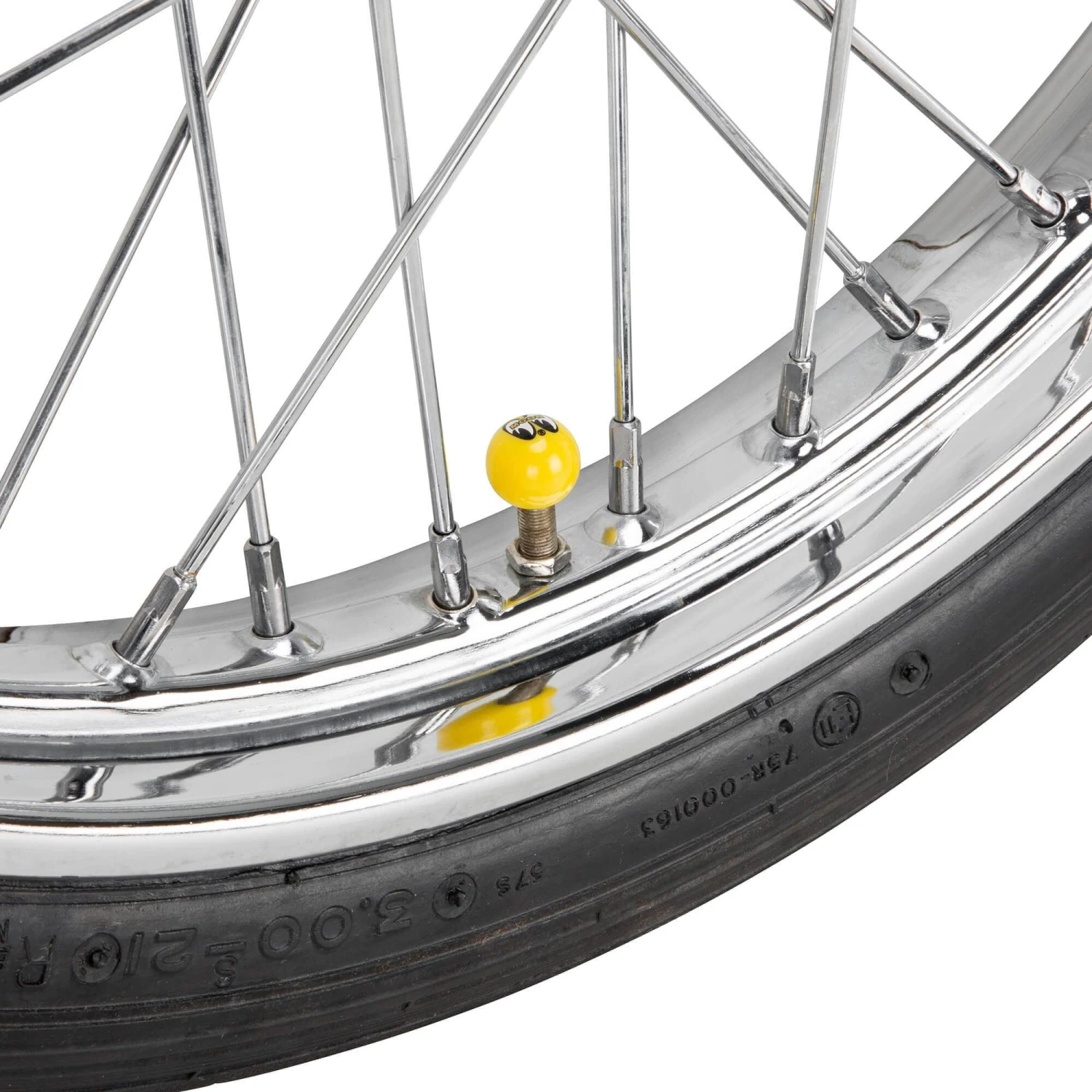 These Mooneyes air valve stem cap take a black Moon logo and apply it to a yellow ball, one facing each direction. Add them to your car or bike’s tires for a little extra fun. Made to fit most standard valve stems. Sold in Pairs.